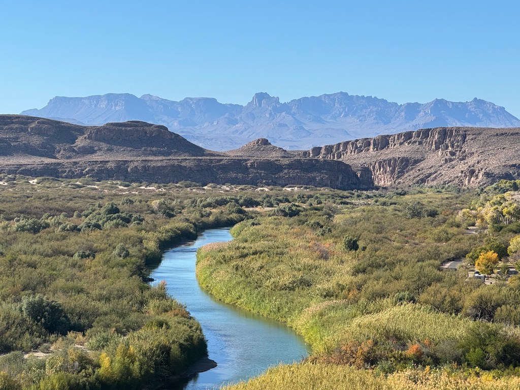 The Big Bend area in west Texas derives its name from its location on the bend of the Rio Grande River, which separates the United States from Mexico. Big Bend National Park has massive canyons, vast desert, the Chisos mountain range, and the Rio Grande River. At just over 800,000 acres, it’s the fifteenth largest national park, but one of the least visited due to its remote location. Big Bend Ranch State Park is right next door with another 300,000 acres of mountains, canyons, desert and river.